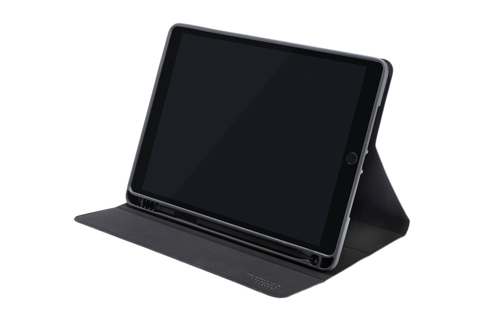 Forsiden kan foldes til stativfunktion, så du kan stille tabletten i forskellige positioner. I etuiet findes også en penneholder til din Pencil.