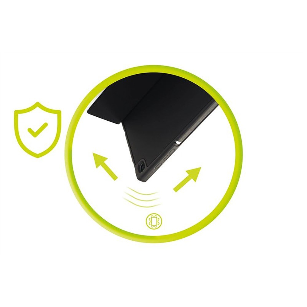 Etuiet beskytter skærmen, bagsiden og hjørnerne rundt om og lukkes med magnetisk lukning, så forsiden holdes på plads, når du bærer tabletten i en taske.