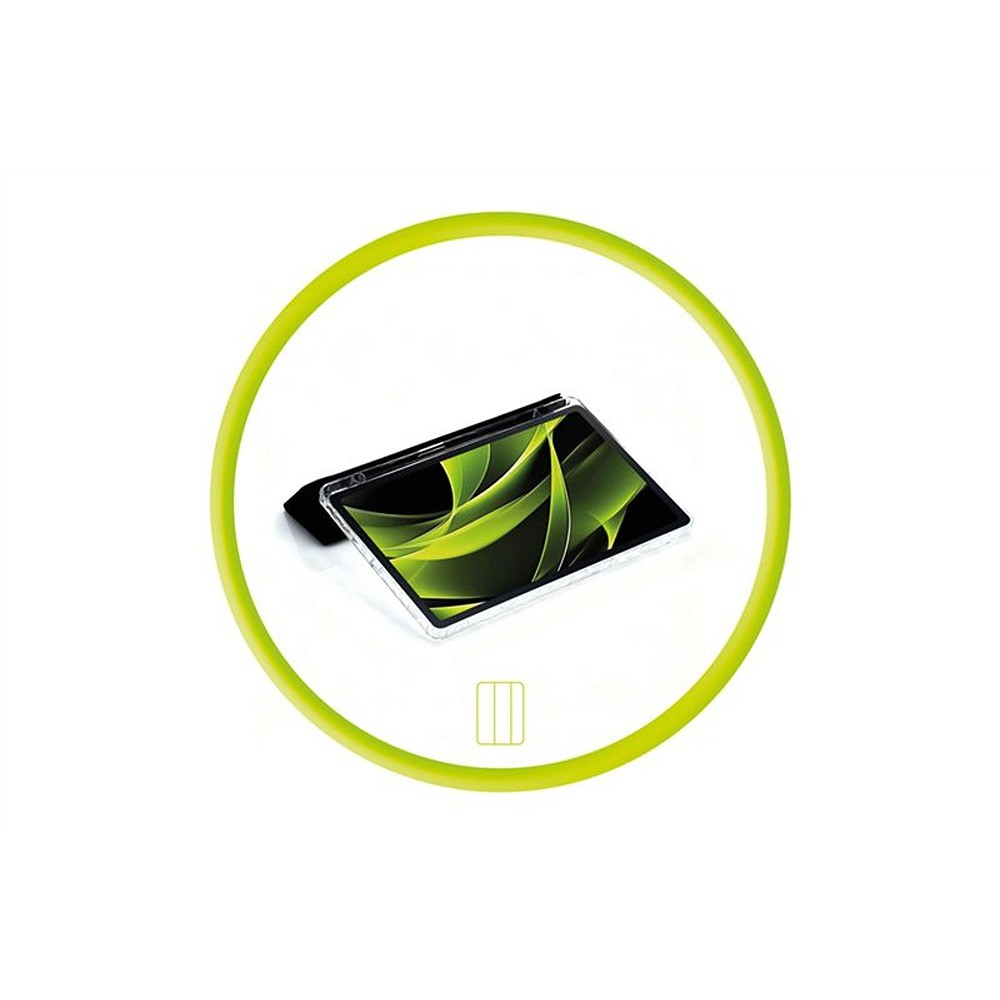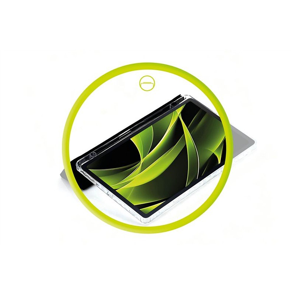 Beskyttelsesetuiet dækker skærmen, bagsiden og hjørnerne og lukkes med magneter, der holder forsiden på plads, når du bærer tabletten.