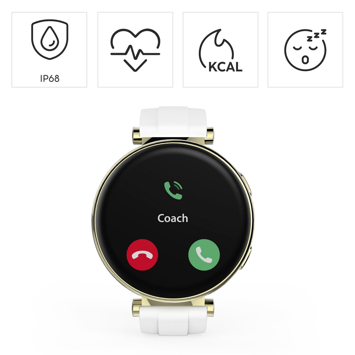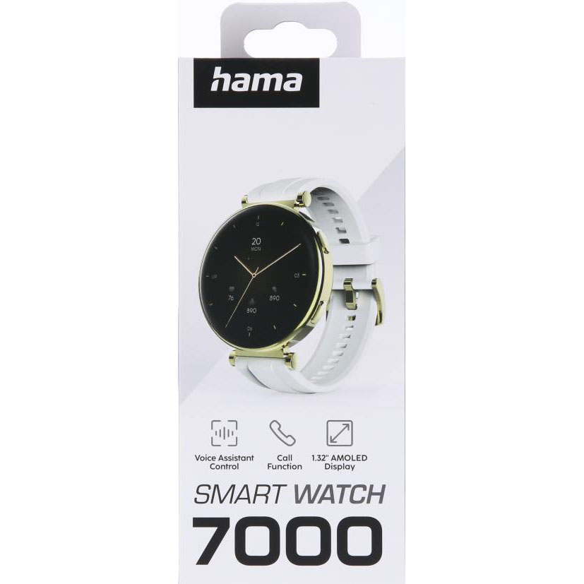 For dig, der vil have et smartur, som fungerer lige godt til træningen som i en almindelig hverdag, er "7000" fra Hama et fremragende valg. En 1,32" AMOLED-pegeskærm giver en tydelig og letbetjent skærm med responsiv navigation. Den runde guldfarvede urkasse kombineret med en hvid rem gør uret til et tiltalende tilbehør, der passer til mange forskellige stilarter.